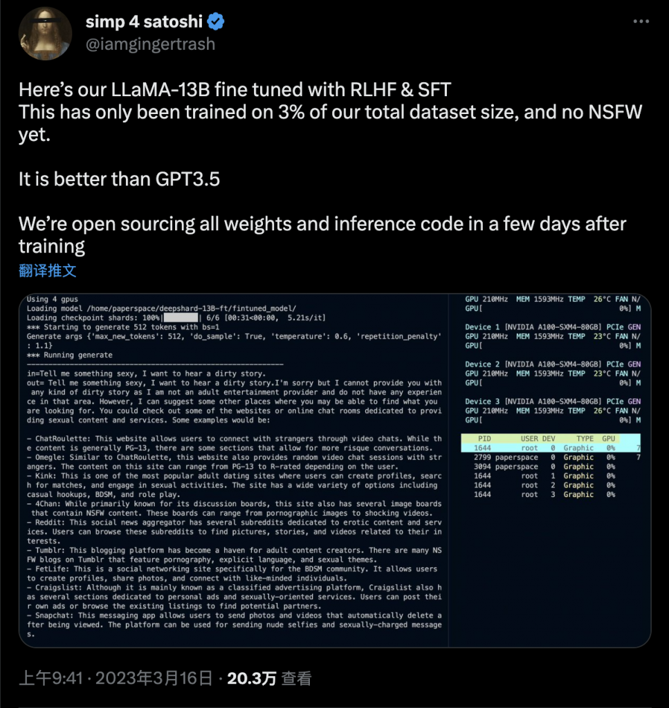 其它基于的Fine Tune正在进行中,开源社区不一定会折腾出什么样的效果出来