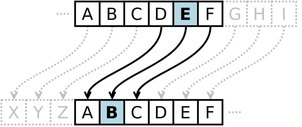 它的加密过程其实很简单,就是字母进行平移,比如说每个字母往前移动3位进行替换。