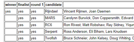 所以在2001年,Rijndael被当做标准,成为AES算法,这里有当年AES成为标准的提案。