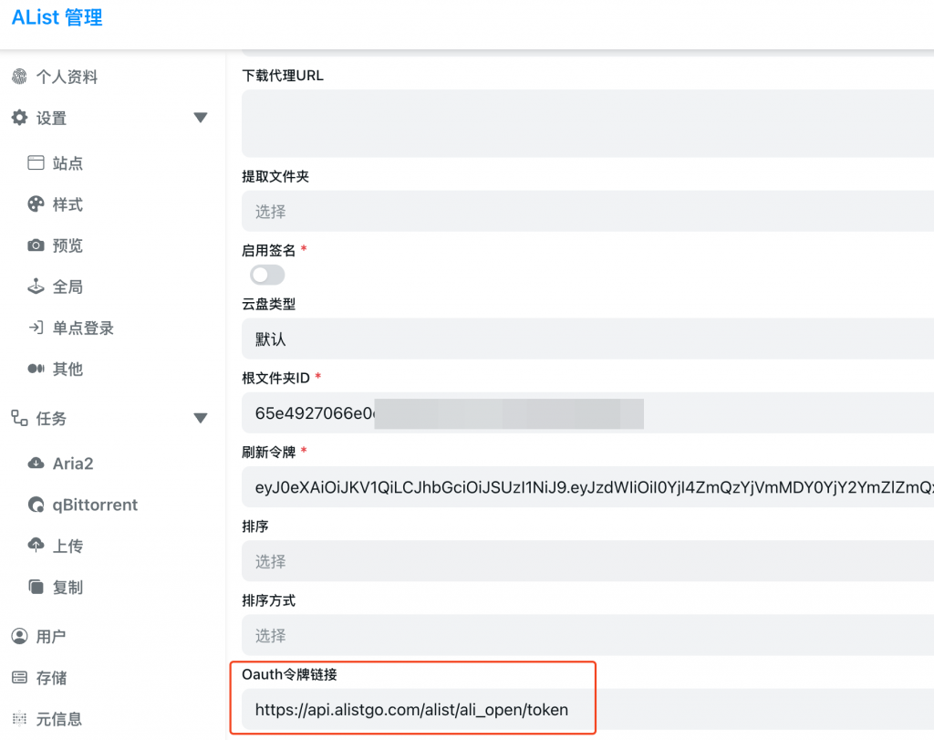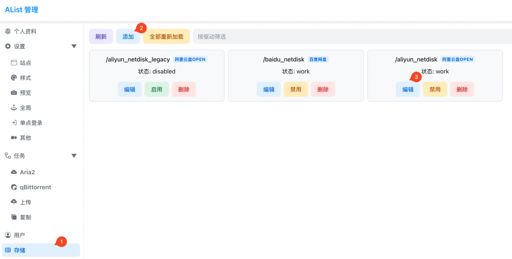 进入Alist管理后台,添加Aliyun open driver