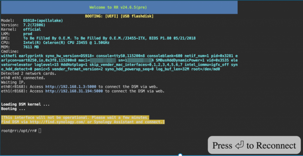 Install DSM 7.2 (DS 918+) on J3455(暴风二期)
