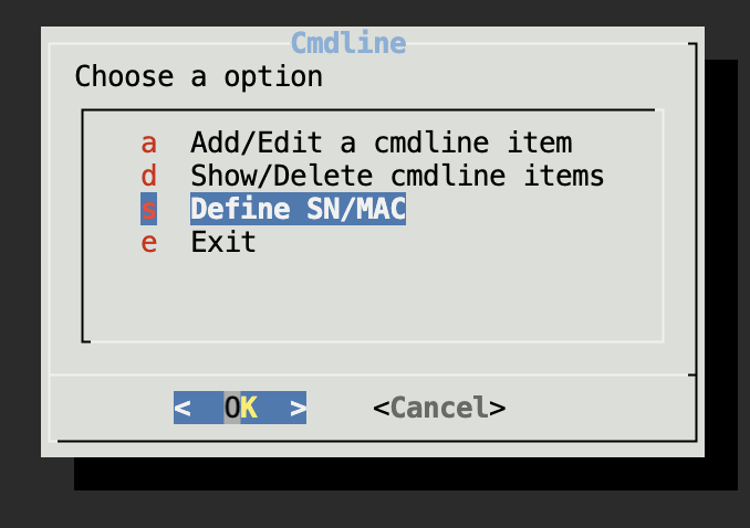 [Optional]Commandline menu-> define SN/MAC