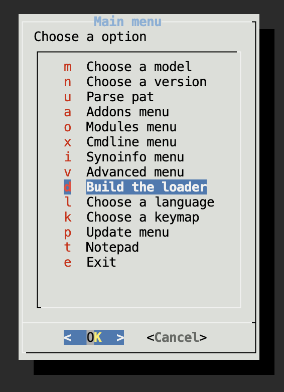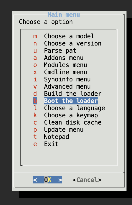 After the build progress finished it will back to the main menu, then boot the loader.