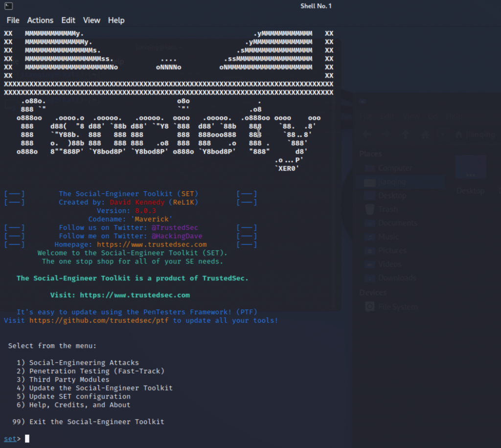 Start Social-Engineer Toolkit(SET)