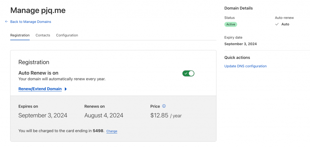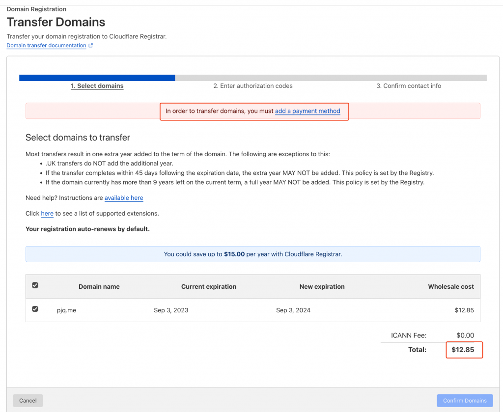 And the status updated, so I need to add a payment method, and the cost is $12.85/year(vs GoDaddy ¥169.00/yr)