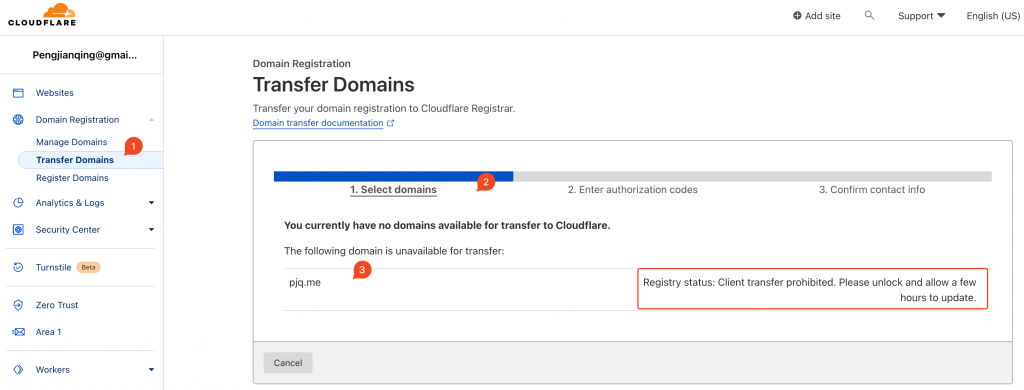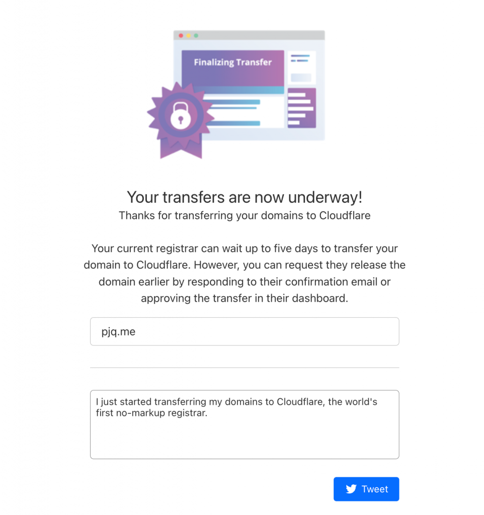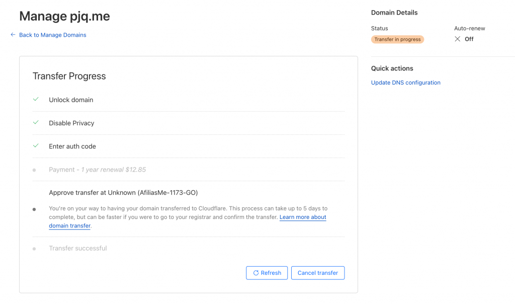 Transfer domain from GoDaddy to CloudFlare