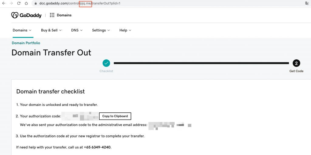 And I can check the domain transfer status, it’s still waiting for some process.