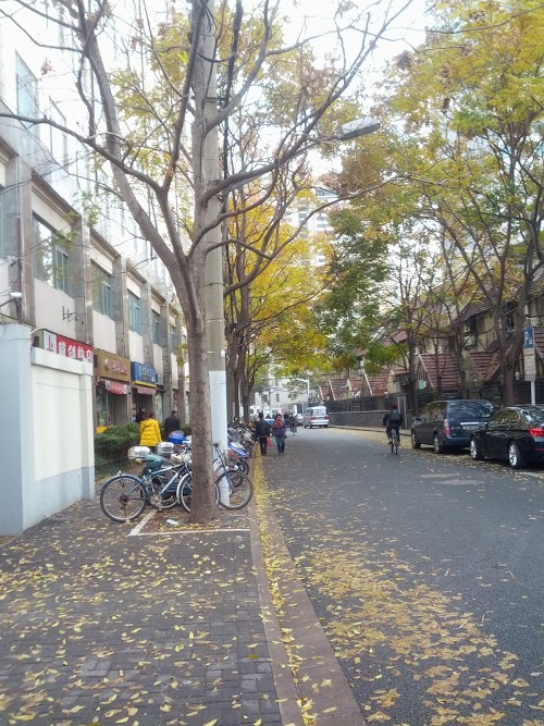 This morning, I take this picture, it looks so nice, the feeling you know, a lot of leaves, falling in the wind and down to the ground, and the color is vivid. So it will recall some memory in the past when I was young.